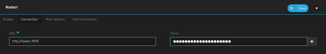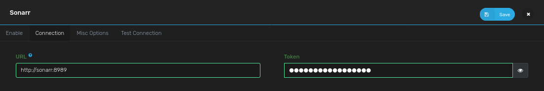 • On the Connections Tab, Set "Sonarr URL": http://sonarr:8989